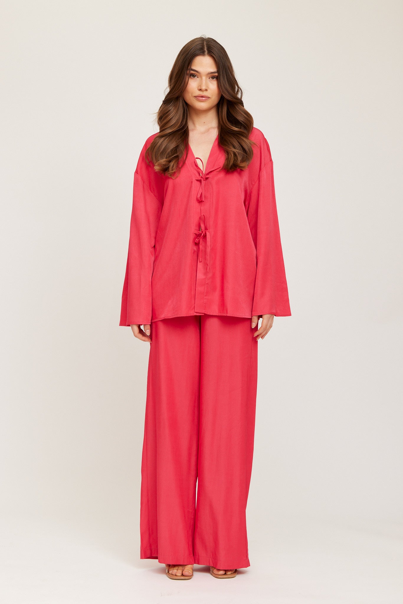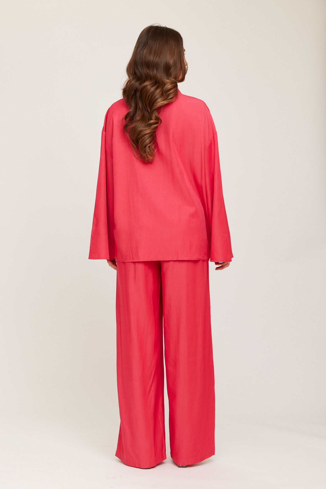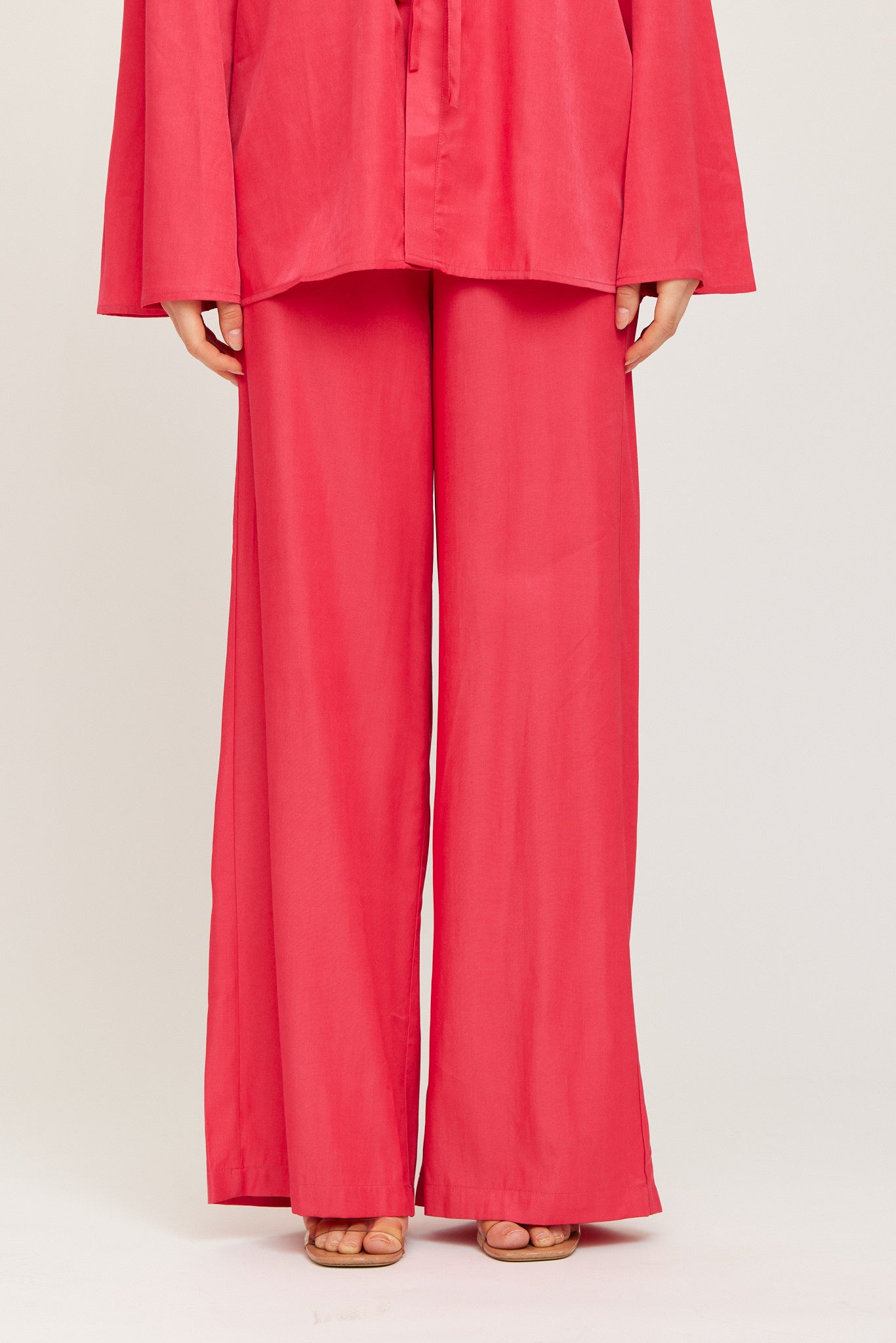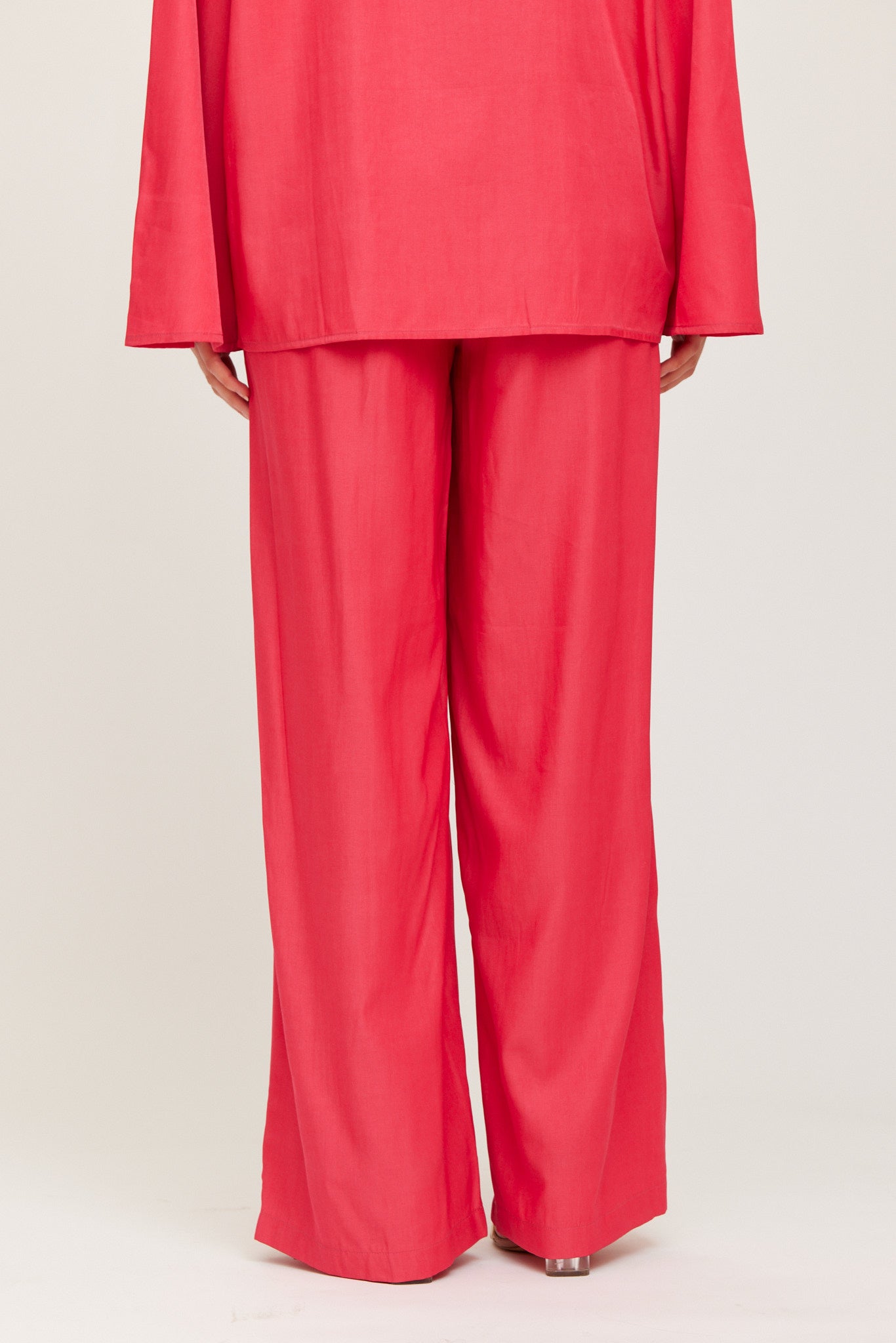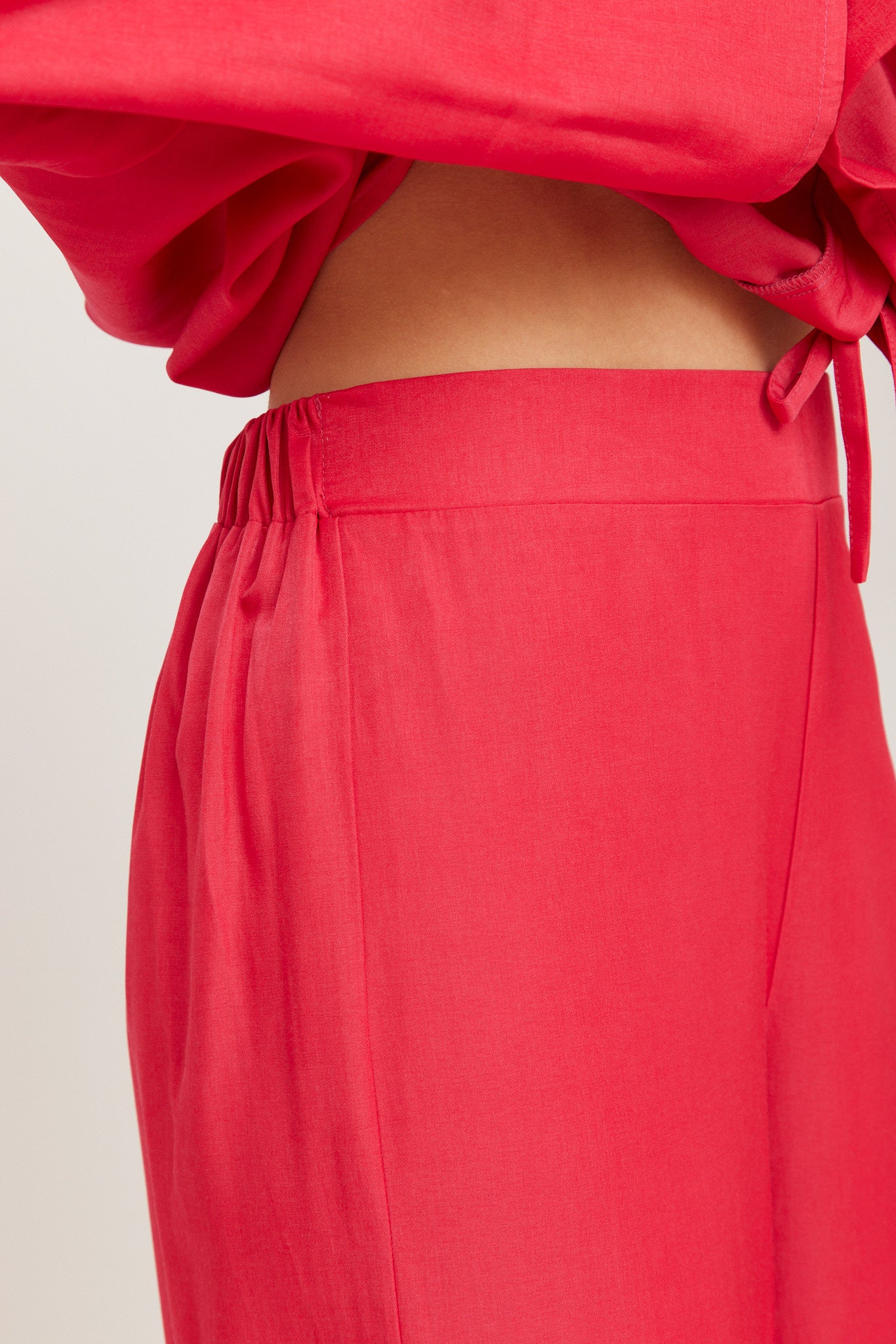 FLowy, wide-let trousers in a soft, lightweight fabric. High-rise fit with an elastic waistband for comfort and movement. Perfect for both relaxed and dressed-up looks.