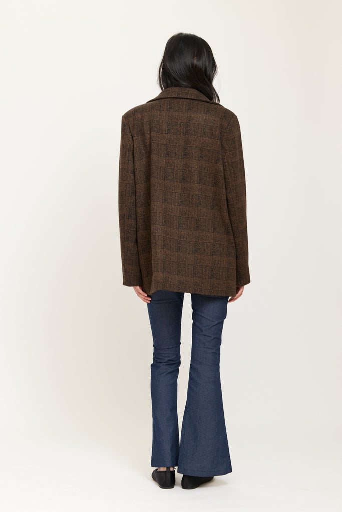 The perfect brown blazer for fall. Vanja blazer has a soft thicker fabric with buttons at front for closing. The model is 175 cm tall and wearing size S. Materials: 100% Polyester